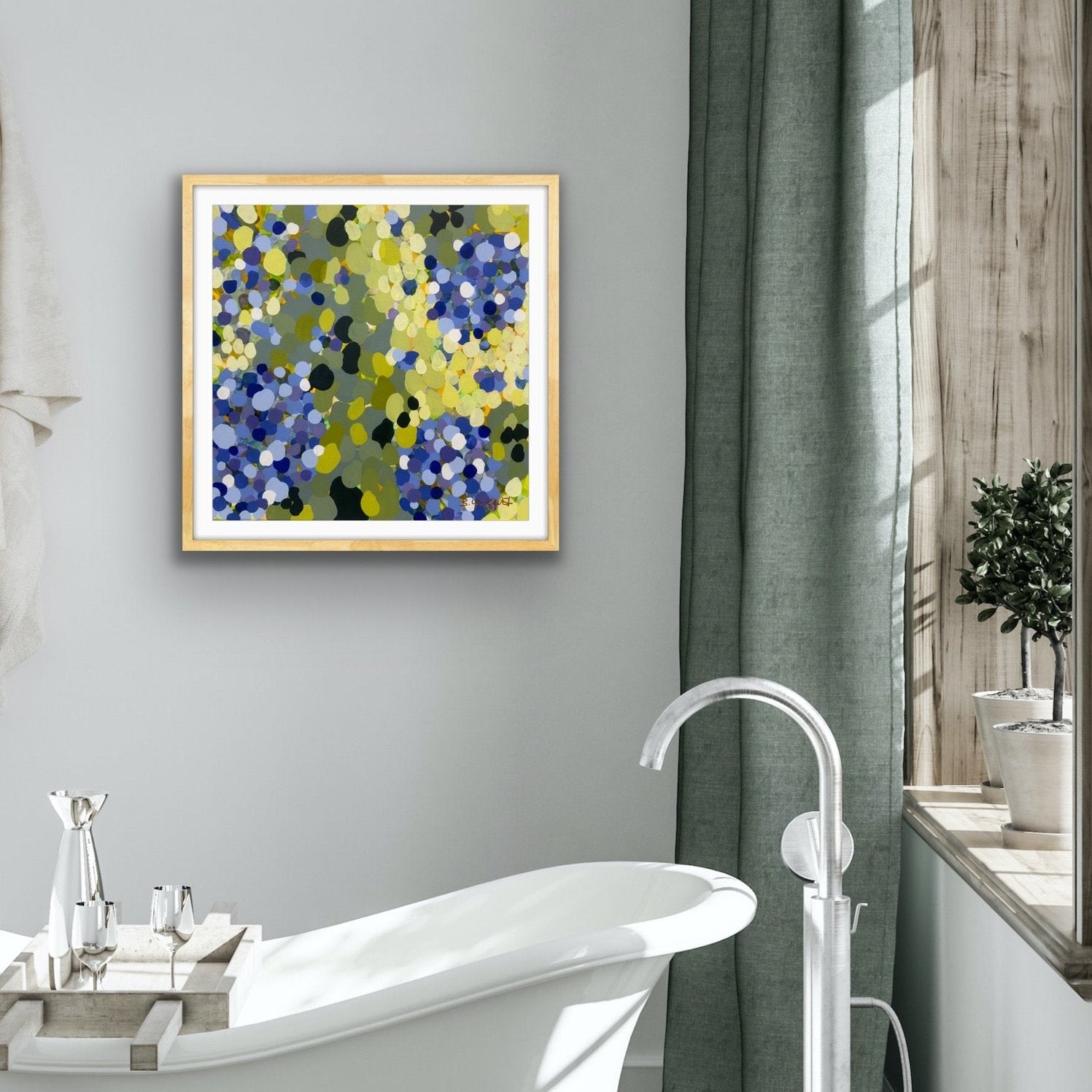Experience the beauty of summer with this abstract floral fine art paper print. The impression of vibrant hydrangea petals are captured in splashes of color that mimic filtered light adding a touch of magic. Perfect for adding a splash of color to any room and reminding you of the joys of summer all year round.
